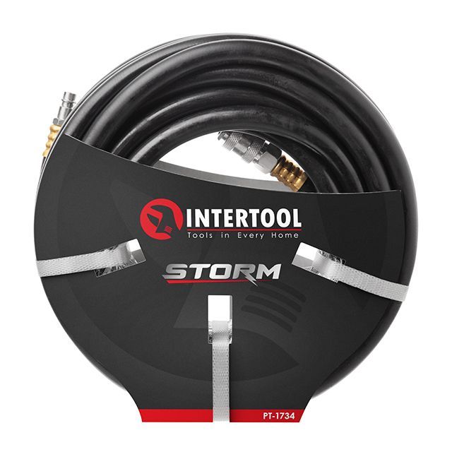 Шланг резиновый воздушный, армированный, до 20 атм, 10×17 мм, 10 м, с быстроразъемными соединениями, STORM INTERTOOL PT-1734