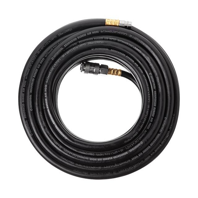 Шланг воздушный резиновый армированный используется для воздушных магистралей пневматического оборудования. Отлично подходит для подачи воздуха на высокомощный инструмент во время ремонта автомобилей, забивания гвоздей и скоб, внутренней отделки, покраски и строительства.