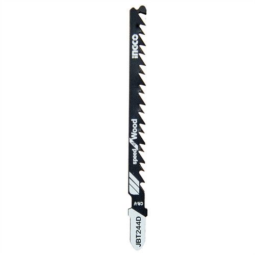 Набір пильних полотен по дереву для лобзика фігурний різ 5 шт. INGCO призначений для роботи з дерев'яними матеріалами різних конфігурацій — ДСП, ДВП, деревиною, зокрема хвойних порід.