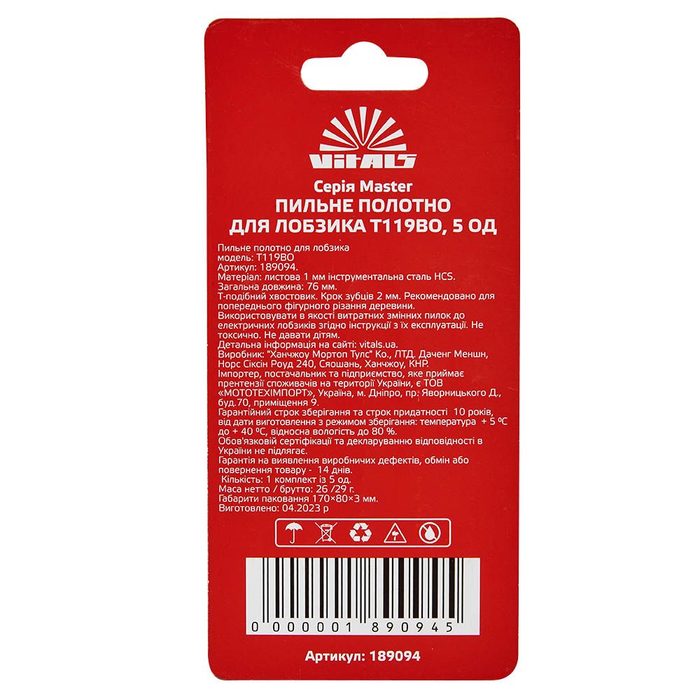 Опис пиляльного полотна для лобзика Vitals Master T119BO (5 од.)