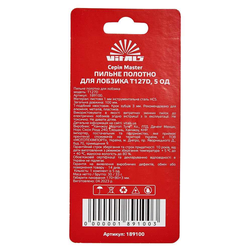 Опис пиляльного полотна для лобзика Vitals Master T127D (5 од.)