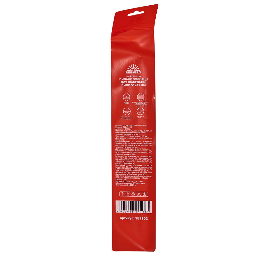 Опис полотна для шабельної пили Vitals Master S1243 HM (1 од.)