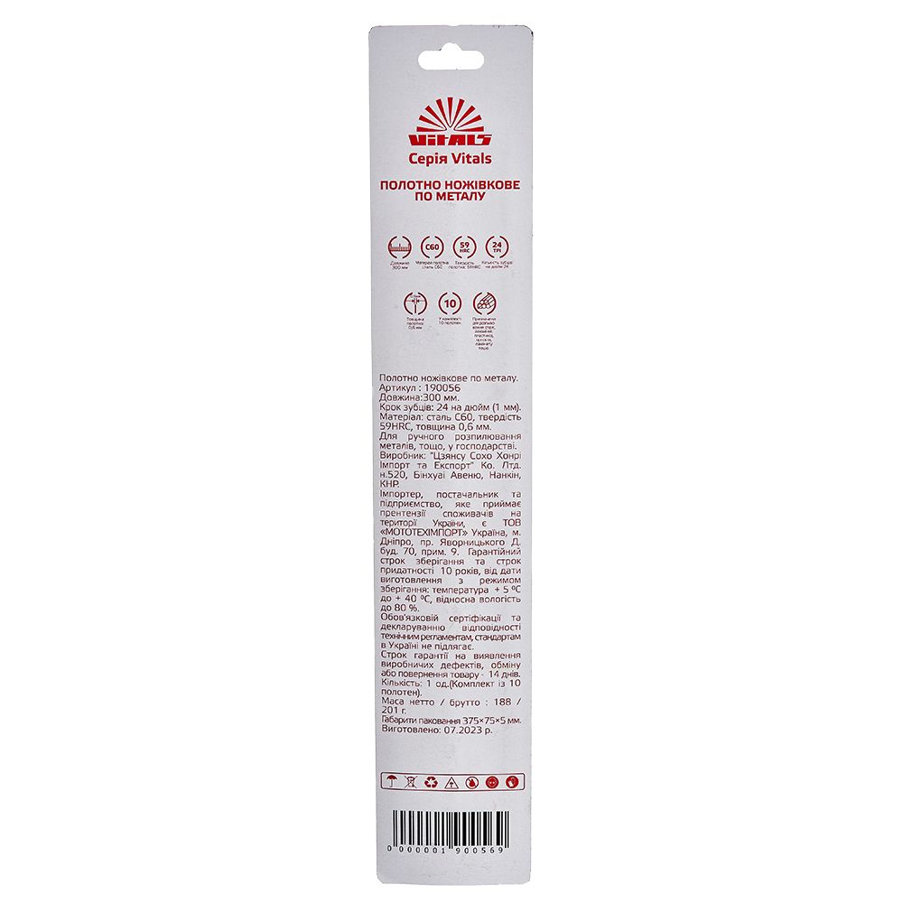 Полотно ножівкове по металу 300 мм 24Т (10 од.) Vitals призначене для розпилювання заготывель з металу, алюмінію, пластику, оргскла, ламінату та ін.