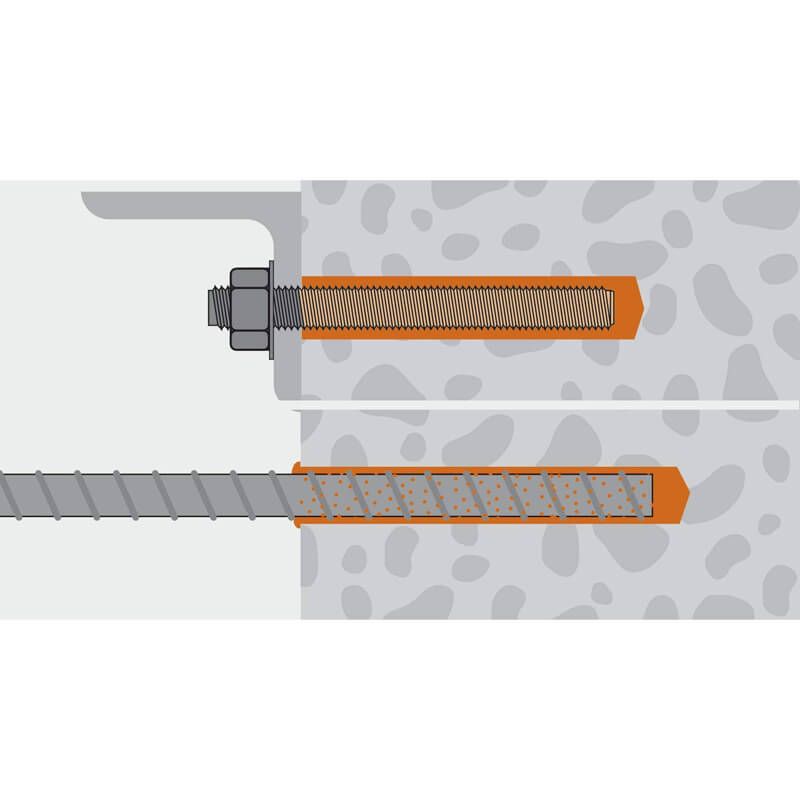 Об’єм картриджа 300 мл.; Температурний режим (Т) -20 - + 30°C.; Застосування з метричної шпилькою від М10 до М30.; Застосування з арматурним прутом від D10 до D32.