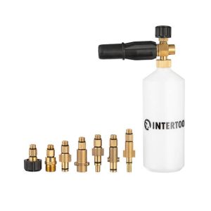Если мойка высокого давления с комплектной насадкой плохо пенит моющее средство, в этом случае не обойтись без специального пеногенератора. Насадка INTERTOOL DT-1536 универсальная и подходит к различным брендам моек высокого давления. С ее помощью вы эффективно очистите грязь с автомобилей, ковровых покрытий, панелей дома и пр.
