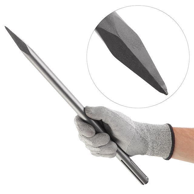 Оптимальная геометрия рабочей пикообразной части долота позволяет быстро и эффективно откалывать плитку, штукатурку, пробивать твердые материалы, создавать отверстия под коммуникации в стенах и пр. Изготовлено долото из стали С40, что обеспечивают высокую производительность и длительный срок службы.