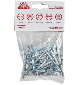 Заклепки алюмінієві 4.0x16 мм (50 од.) Vitals