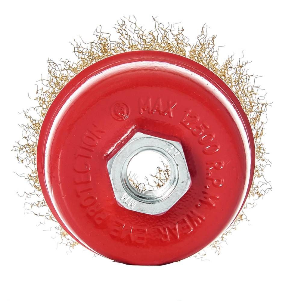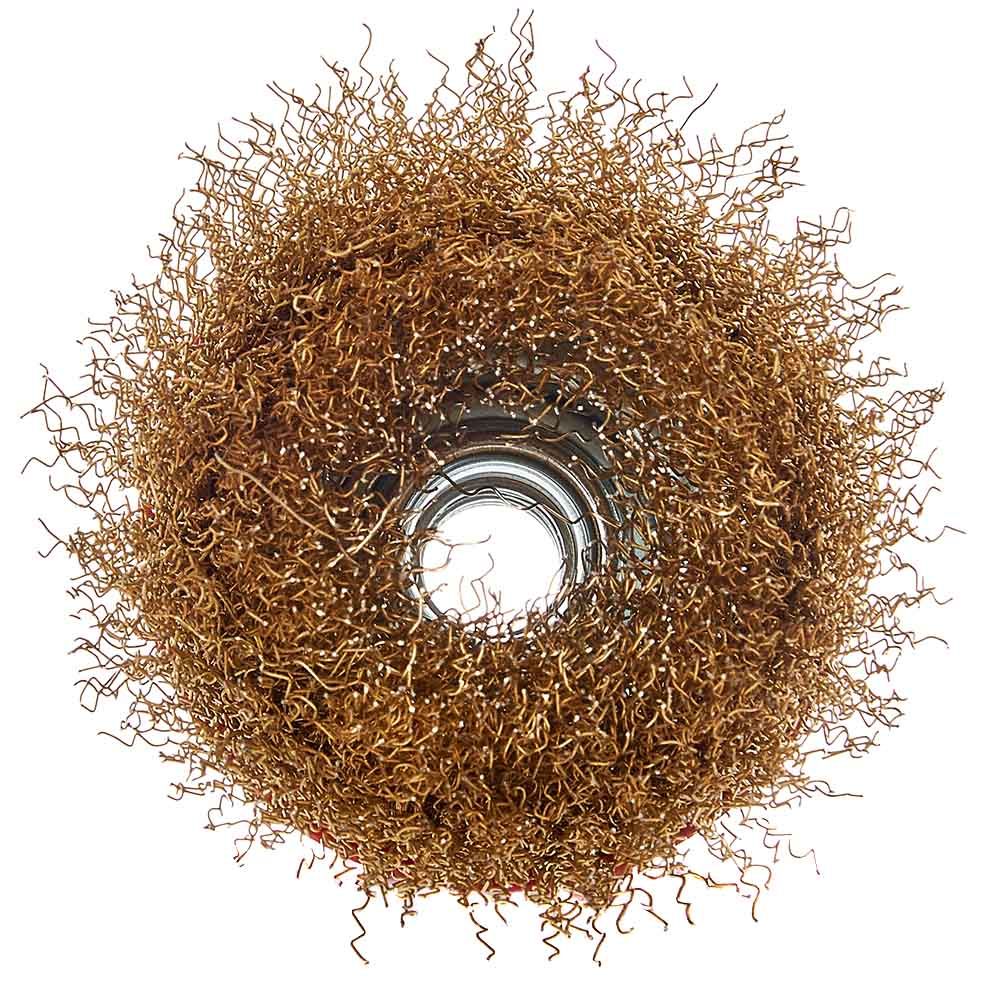 Щітка-чашка Vitals гофрована латунована 75 мм М14, 0,3 мм призначена для обробки дерева, зняття фарби, шліфування металу, зняття іржі.