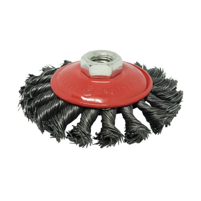 Щітинки з плетеної сталі та конічна форма корпусу забезпечують ефективне зачищення навіть у важкодоступних місцях.