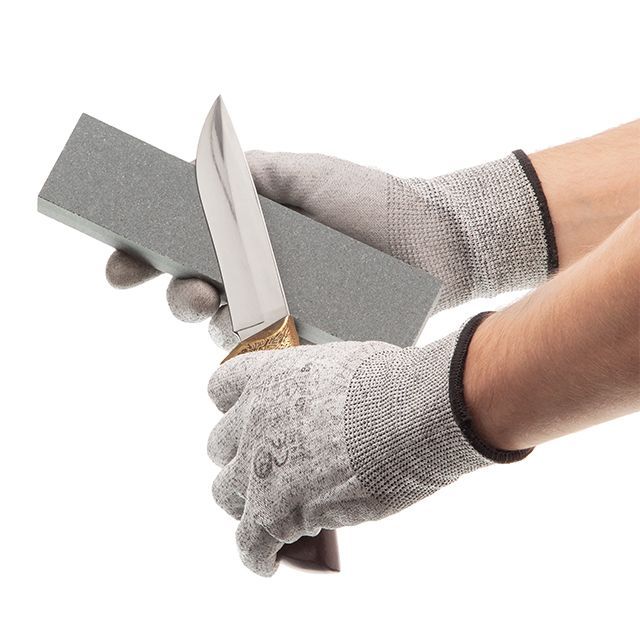 Обе стороны бруска покрыты высококачественными абразивами с зернистостью К120 (серая сторона) и К240 (белая сторона), что делает его универсальным инструментом для разных этапов заточки.