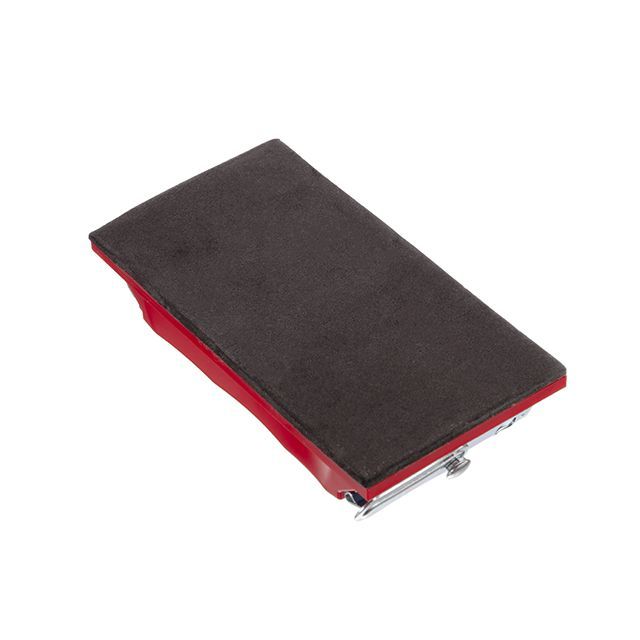 Держатель изготовлен из прочного пластика, размером 85х165 мм, резиновая поверхность к которой прилегает сетка обладает хорошими упругими характеристиками, позволяющими выдерживать большее приложенное усилие, а увеличенная толщина позволяет обеспечить равномерное прилегание даже на очень неровных поверхностях. Металлические зажимы плотно прижимают абразив, антикоррозионная обработка металлических элементов защищает от ржавчины и позволяет мыть терку после работы.