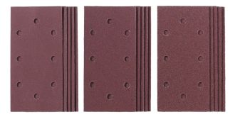 Набор шлифовальной прямоугольной бумаги KWB размером 187х93 мм. Тип крепления - липучка. Для обработки дерева и металла. В комплекте шлифовальные листы: 5 листов зерном Р60, 5 листов зерном Р120 и 5 листов зерном Р180.
