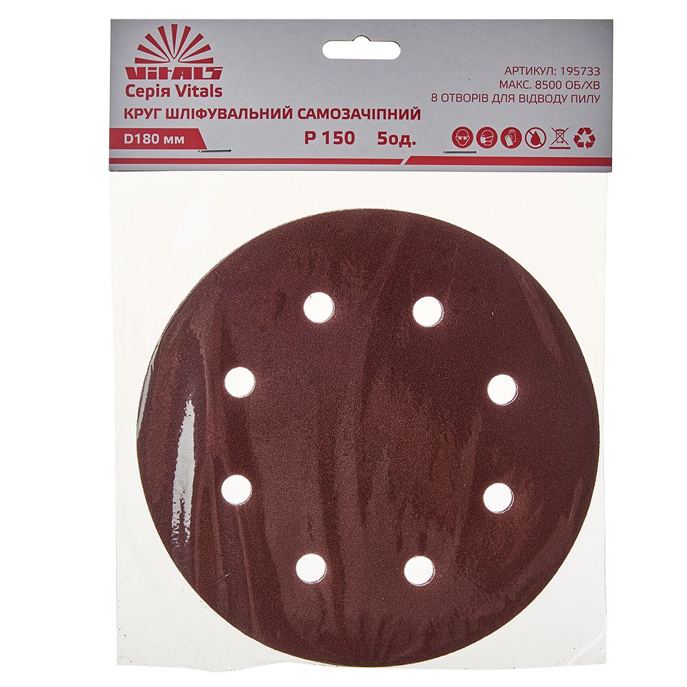 Опис круга шліфувального самозачіпного Vitals 180 мм, 8 отв. з. – 150, 5 од.