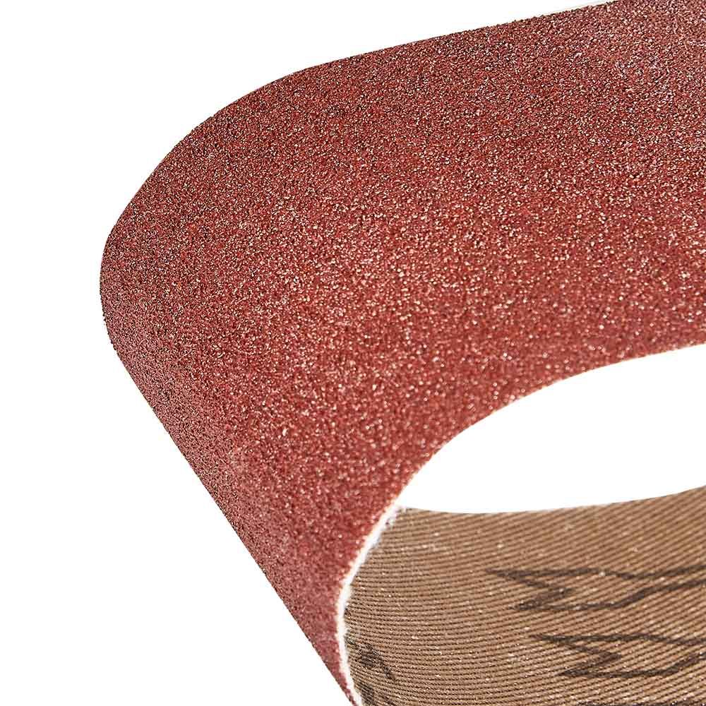 Абразивний матеріал стрічки — електрокорунд, зернистість — Р100. Міцна та еластична тканинна основа не рветься під час експлуатації, що забезпечує тривалу роботу навіть із міцним матеріалом. Посилений тип сполучного шва підвищує міцність і не викликає биття.