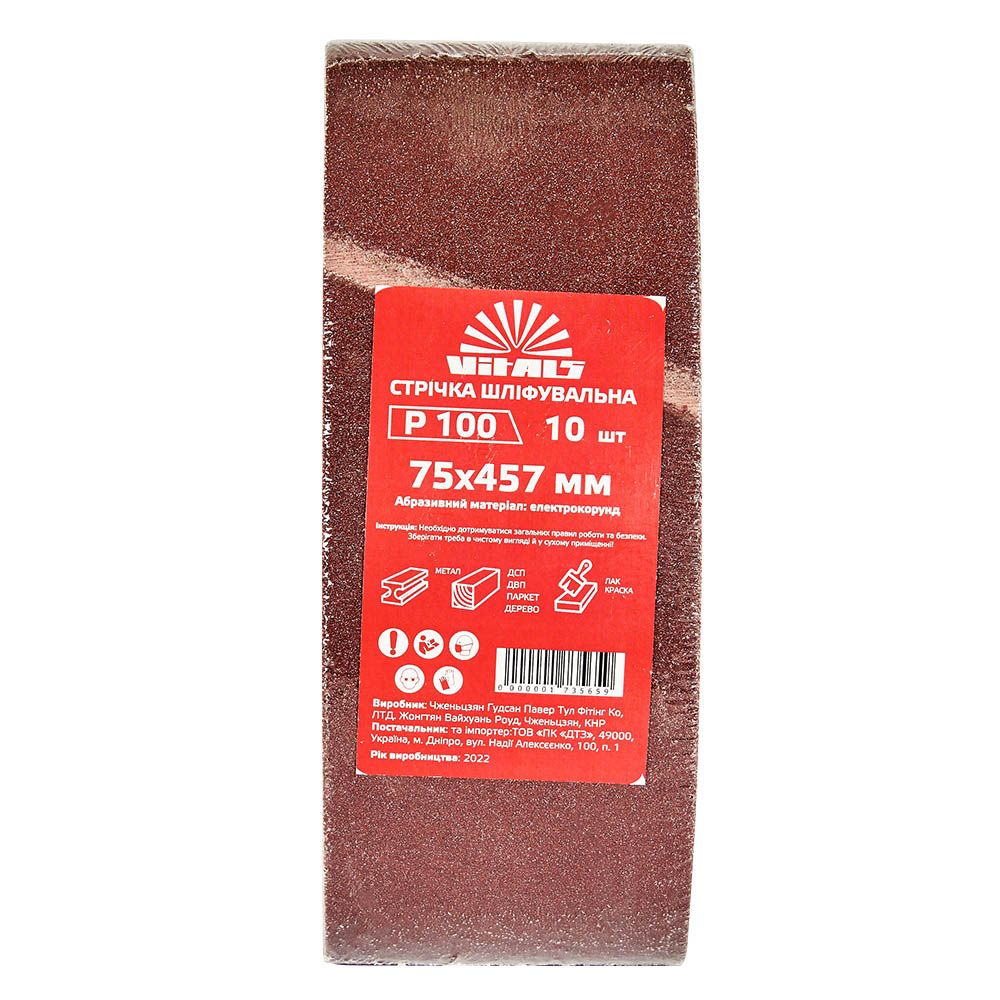 Опис стрічки шліфувальної Vitals 75х457 мм з. 100