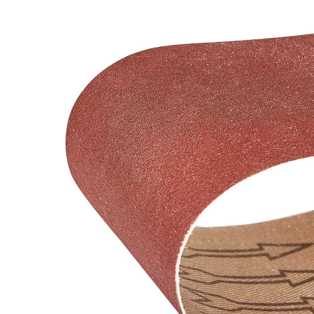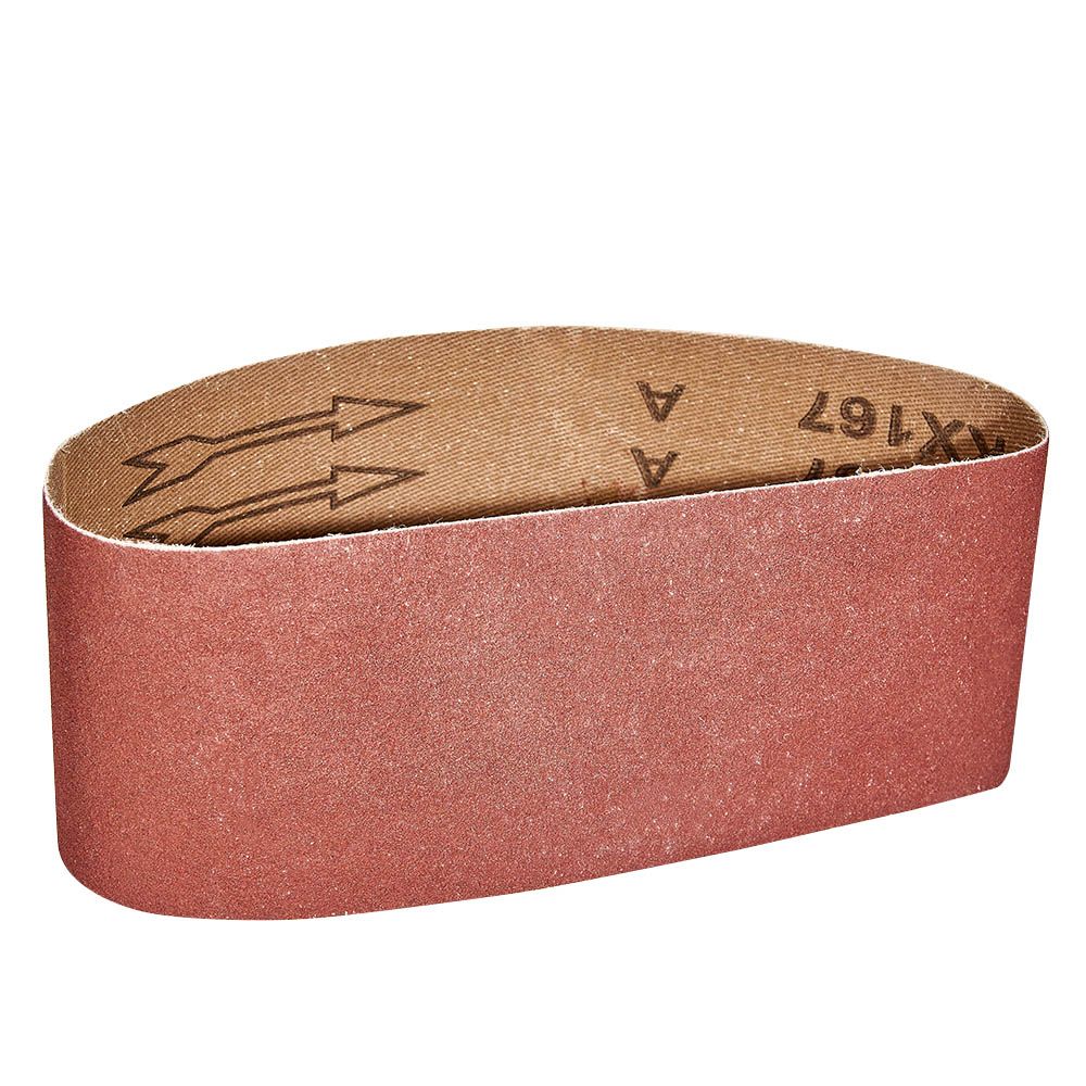 Абразивний матеріал стрічки — електрокорунд, зернистість — Р180. Міцна та еластична тканинна основа не рветься під час експлуатації, що забезпечує тривалу роботу навіть із міцним матеріалом. Посилений тип сполучного шва підвищує міцність і не викликає биття.