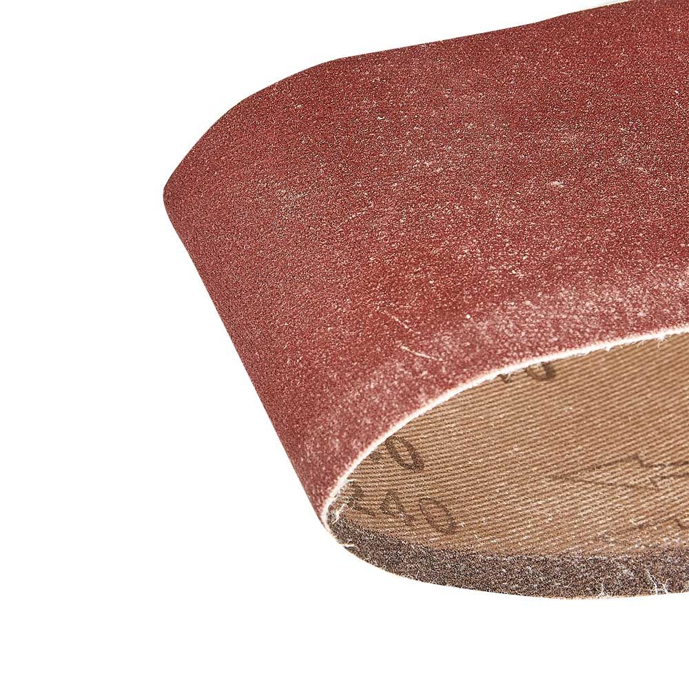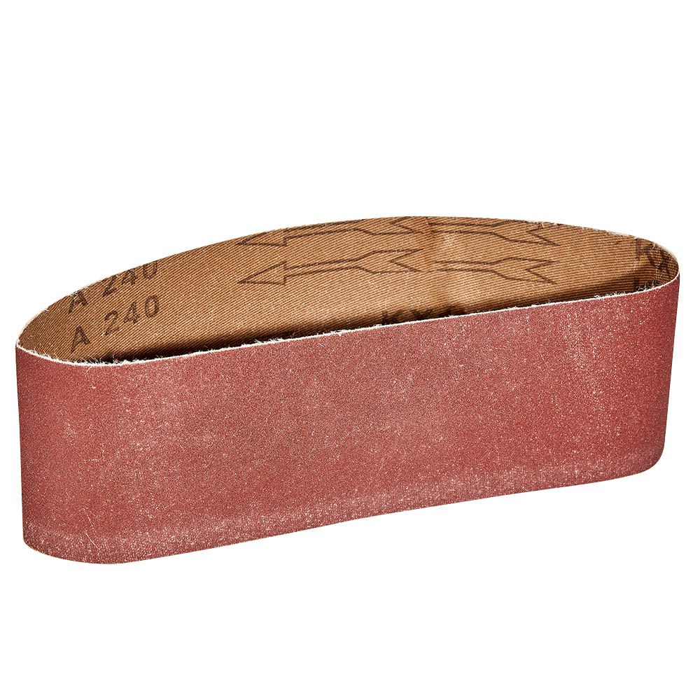 Абразивний матеріал стрічки — електрокорунд, зернистість — Р240. Міцна та еластична тканинна основа не рветься під час експлуатації, що забезпечує тривалу роботу навіть із міцним матеріалом. Посилений тип сполучного шва підвищує міцність і не викликає биття.