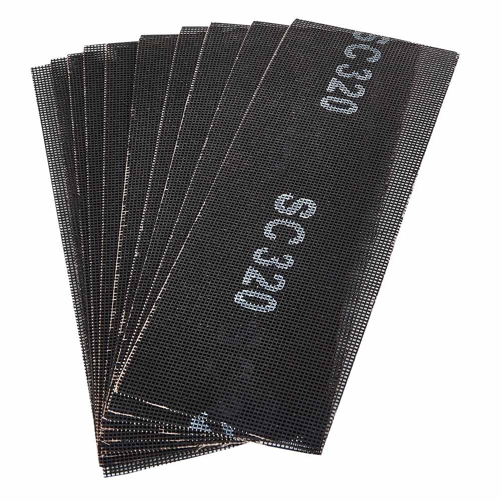 Абразивний матеріал сітки — електрокорунд, зернистість — Р320. Має збільшений робочий ресурс та підвищену зносостійкість.