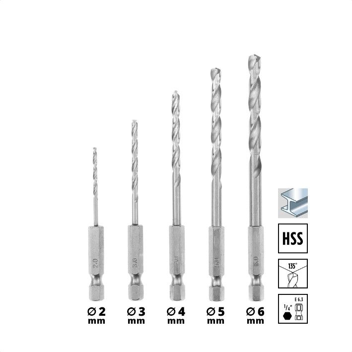 5 свердел по металу (2-6 мм) з кованої сталі HSS з кутом 135°
