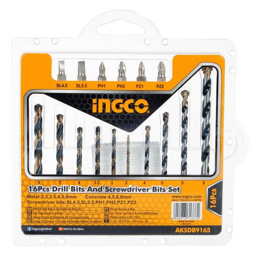 Набір свердла по металу, свердла по бетону, біти 16 шт INGCO виконаний з високоміцної сталі.