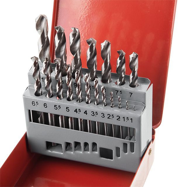 Набор сверл размещен в компактном металлическом износостойком кейсе с персональными отсеками для каждого сверла. Нумерация размера позволит быстро найти подходящее сверло под любые задачи.
