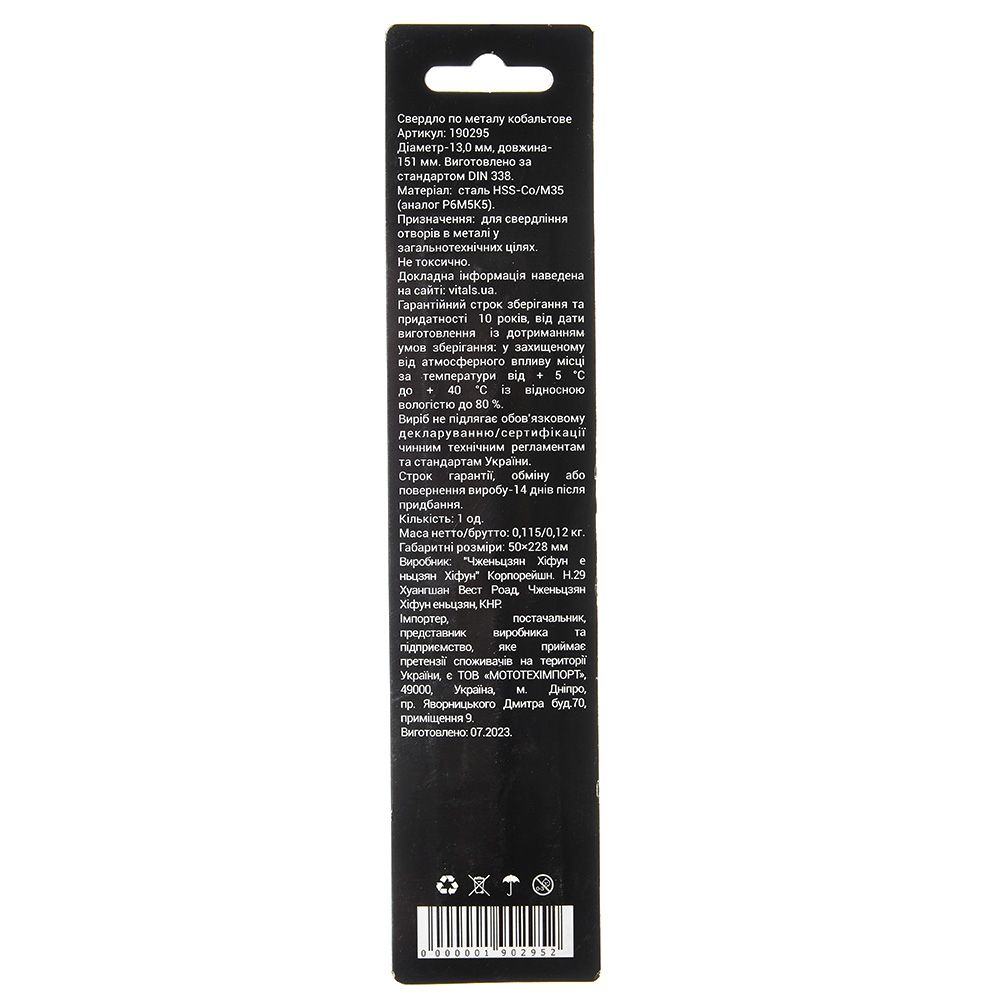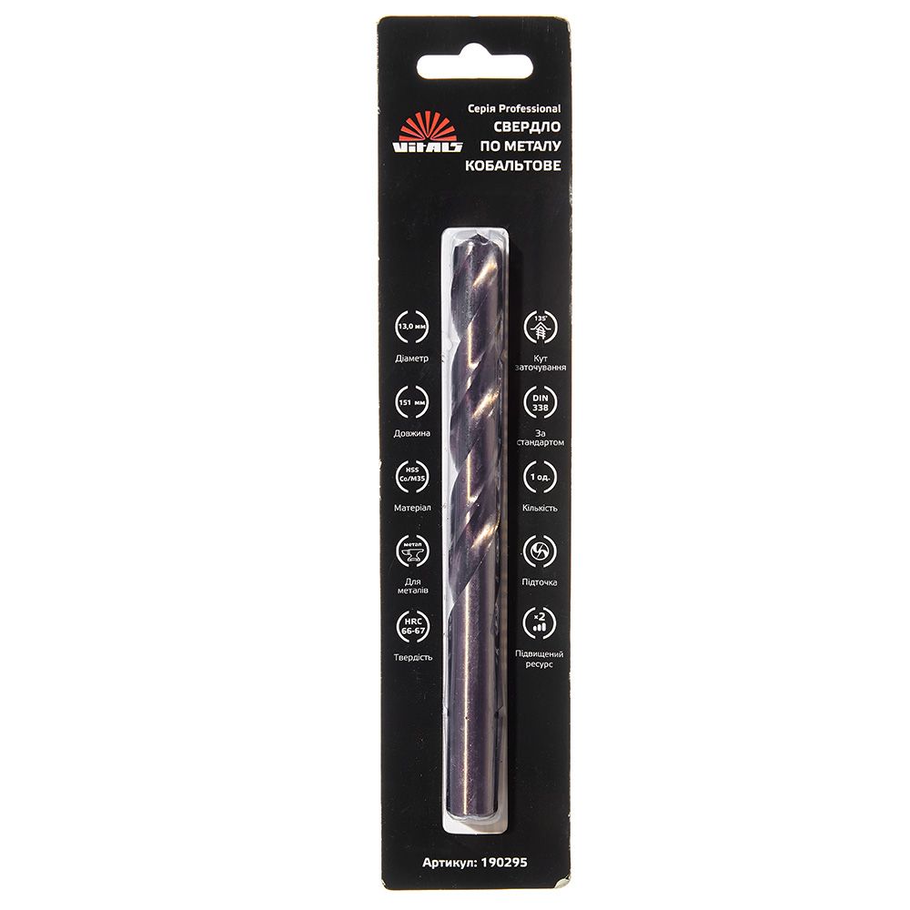 Опис свердла по металу HSS-Co/M35 13.0 (1 од.) Vitals Professional