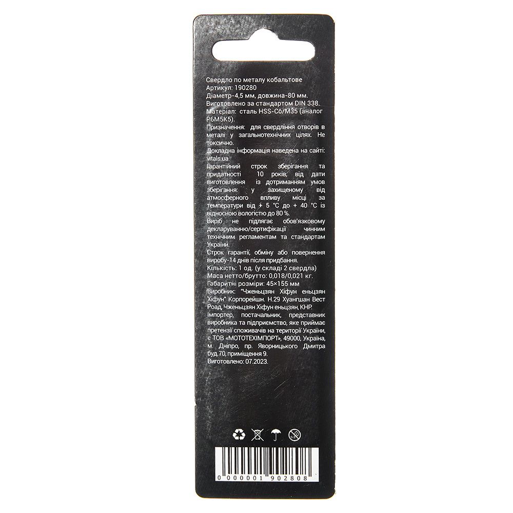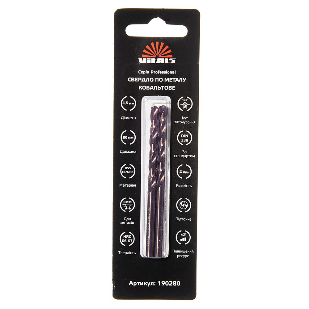 Опис свердла по металу HSS-Co/M35 4.5 (2 од.) Vitals Professional