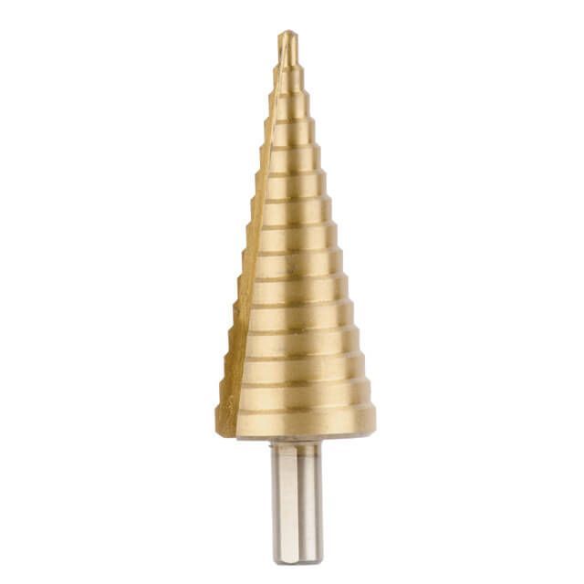 Ступенчатое (шаговое) сверло – отличный помощник для деликатного сверления отверстий большого диаметра в листовых металлах и пластике. Ступенчатая структура позволяет сверлить отверстия разного диаметра (4-32 мм), без замены режущего инструмента.