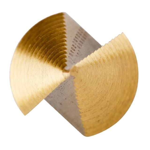 Две широкие канавки без труда отводят стружку и обеспечивают охлаждение рабочей части инструмента. Внутри одной из канавок нанесена шкала диаметров, что значительно упрощает работу. Если не перегружать сверло высокими оборотами и использовать смазочно-охлаждающие жидкости (СОЖ), оно гарантированно прослужит дольше.