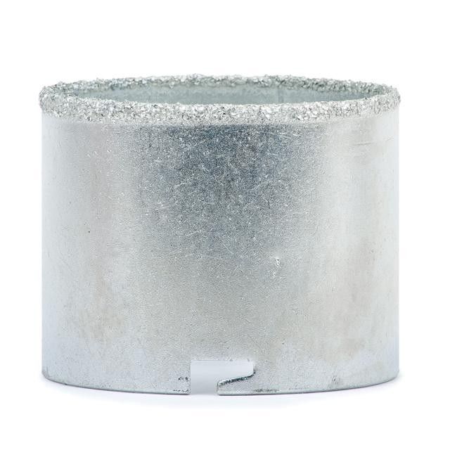 Режущая кромка покрыта карбид-вольфрамовой крошкой, что обеспечивает комфортное сверление без сколов и трещин. Глубина сверления составляет 64 мм.