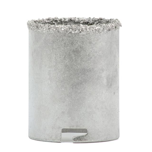 Режущая кромка покрыта карбид-вольфрамовой крошкой, что обеспечивает комфортное сверление без сколов и трещин. Глубина сверления составляет 64 мм.