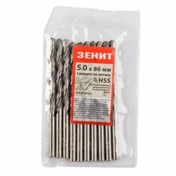 Свердло HSS по металу 5.0х86 мм (10 шт) Зенит