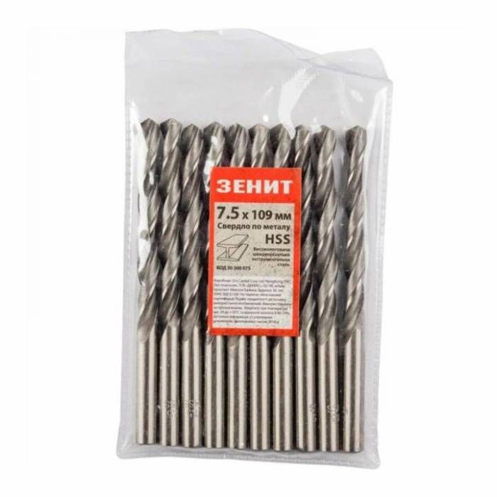 Свердло HSS по металу 7.5х109 мм (10 шт) Зенит