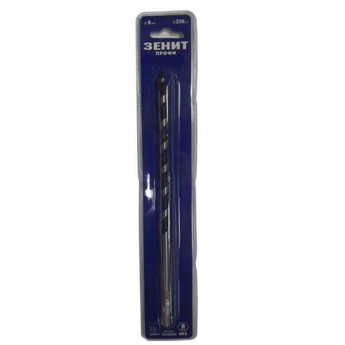 Свердло шнекове діаметром 8 мм та довжиною 230 мм підходить для свердління отворів в твердих породах дерева. Виріб виготовлений з конструкційної вуглецевої сталі марки 45, яка пройшла спеціальне гартування.