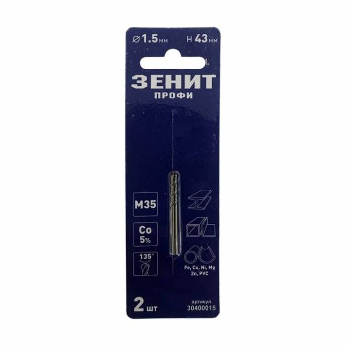Свердло по металу діаметром 1,5 мм і довжиною 43 мм виготовлене з високоякісної швидкорізальної сталі М35 (Со5%) з нанесенням кобальтового покриття.