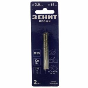 Свердло по металу діаметром 3,0 і довжиною 61 мм виготовлене з високоякісної швидкорізальної сталі М35 (Со5%) з нанесенням кобальтового покриття.