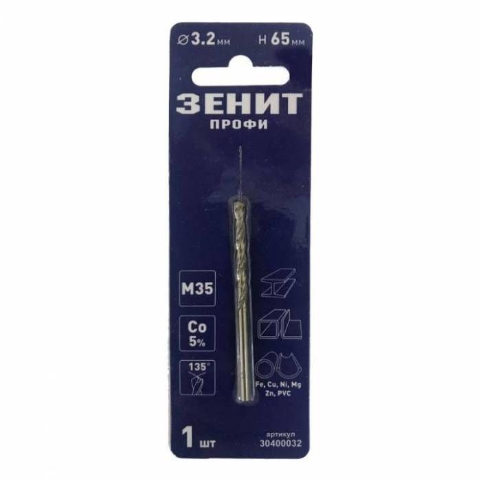 Свердло по металу з кобальтовим покриттям діаметром 3,2 мм і довжиною 65 мм виготовлене з високоякісної швидкорізальної сталі М35 (Со5%).