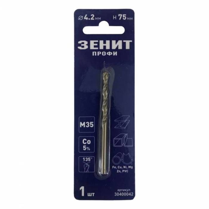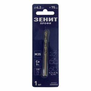 Свердло по металу діаметром 4,2 мм і довжиною 75 мм виготовлене з високоякісної швидкорізальної сталі М35 (Со5%) з нанесенням кобальтового покриття.