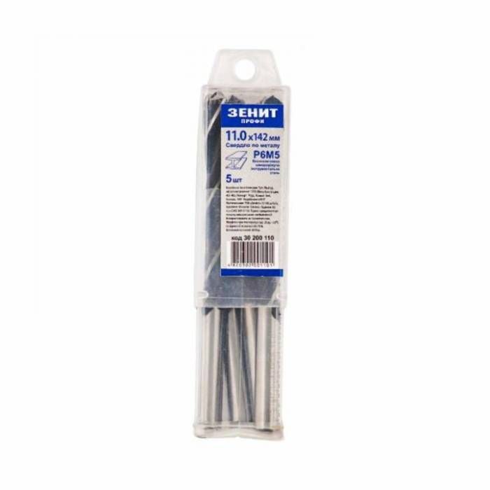 Свердло Р6М5 по металу 11.0х142 мм (5 шт) Зенит Профи