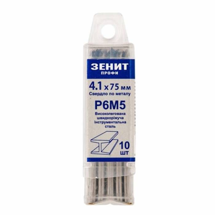 Свердло Р6М5 по металу 4.1х75 мм (10 шт) Зенит Профи