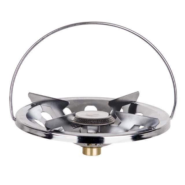 Тарелка с газовой конфоркой оснащена удобной ручкой для транспортировки всего баллона. Резьбовое соединение прочное и долговечное, изготовлено из латуни. Горелка используется для монтажа на баллон вместе с вентилем GS-0009.