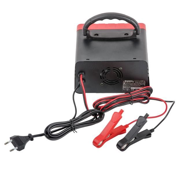 Зарядное устройство имеет полностью изолированные клеммы и удобную ручку для транспортировки. Амперметр отображает силу тока батареи для контроля процесса зарядки. Устройство очень простое в использовании, однако рекомендуем заряжать в проветриваем помещении и не оставлять без присмотра на время зарядки.