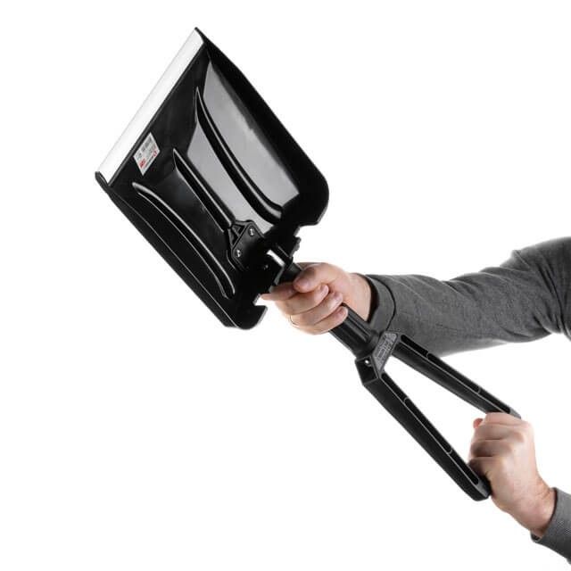 Складная конструкция делает лопату очень компактной, поэтому она стала полезным и удобным попутчиком в автомобиле. Складная конструкция фиксируется резьбовым соединением, что одновременно и надежно, и удобно. Форма рукоятки отлично подходит как для уборки, так и для переноски снега.