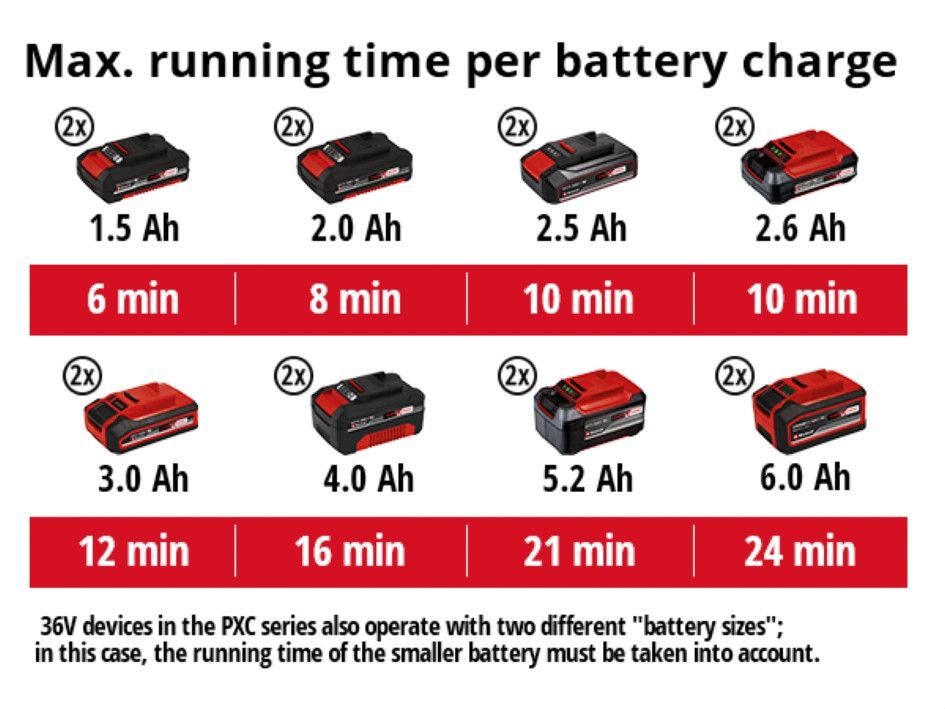 Для роботи необхідні 2 акумулятори 2 х 18 = 36 В