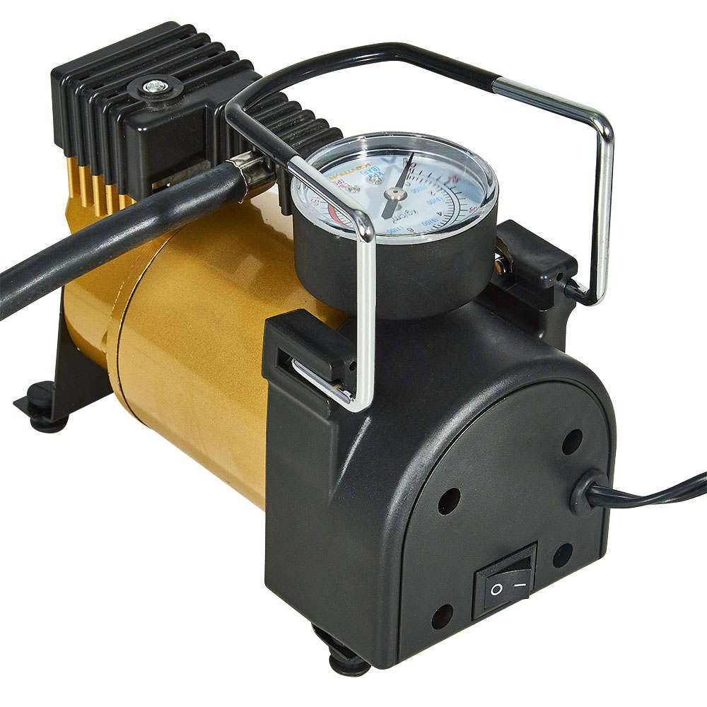 Компресор АК-15035А забезпечений шлангом з якісним накінечником, що накручується на ніпель колеса і точним манометром.