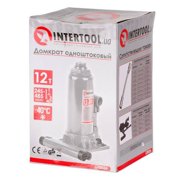 Домкрат "столбик" одноштоковый 12т, 245-485 мм INTERTOOL GT0026