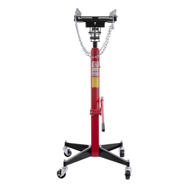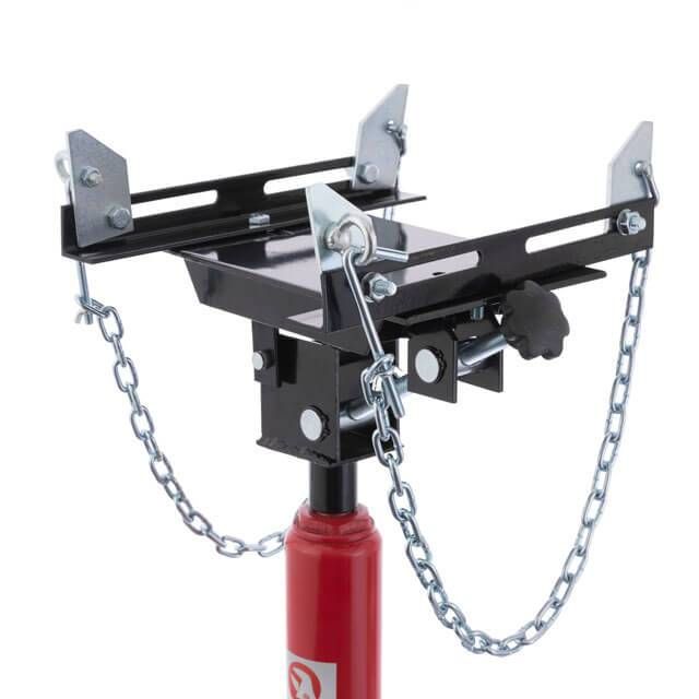 Устройство оснащено рычагом, накачивая который, происходит подъем площадки. Опускание площадки после извлечения коробки передач выполняется при помощи спускового винта. Стойка гидравлическая легко перемещается в любых направлениях: небольшие ролики-колеса обеспечивают отличную маневренность.