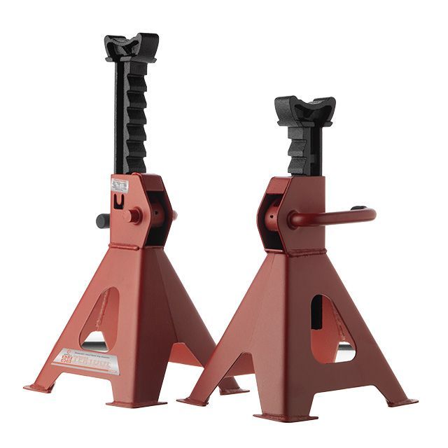 Подставки под машину используются после поднятия кузова домкратом, поскольку гидравлический домкрат не предназначен для длительного удержания груза. Подставки имеют рабочую высоту в диапазоне 275-428 мм и способны удерживать машину на протяжении всего времени ремонта.