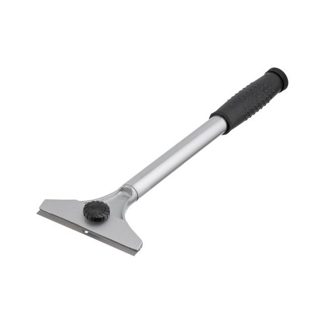 Скребок имеет прочную стальную конструкцию с фиксированным лезвием, длиной 100 мм. Удобная прорезиненная ручка обеспечивает плотное сцепление с ладонью. Скребком комфортно работать даже влажными и испачканными руками.
