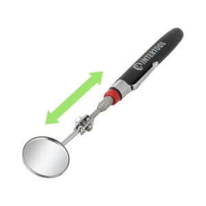 Круглое зеркало, диаметром 50 мм, обеспечивает отличный обзор, а за счет шарового шарнира может размещаться под нужным углом, что очень удобно при осмотре днища и деталей под капотом машины. Телескопическая конструкция раскладывается на необходимую вам длину от 170 мм до 485 мм.